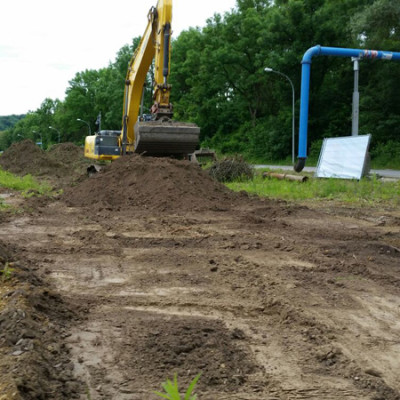 15.06.16 Endlich ist es so weit: unser Spatenstich mit illustren Gästen. Die NaBau Vorstände Barbara Krause und Michael Kroll können bei strahlendem Sonnenschein u. a. OB Hans Rampf, 2. Bgm. Dr. Thomas Keyßner, Herrn Huber, Reg. v. Ndb, Johann Winklmaier, Liegenschaftsamt, unseren Bauleiter Bernhard Paringer und den Grünplaner Helmut Wartner sowie von der Kredit gebenden Umweltbank Nürnberg die Herren Welke und Raum begrüßen. Unsere Mitglieder finden mit Vertretern der Medien und neuen Interessenten ins Gespräch. Im Hintergrund wird am Kriechkeller für das Haus Süd gearbeitet und – beim Verlassen des Geländes ziehen über unserer Bautafel die nächsten Gewitterwolken auf. Prost!
