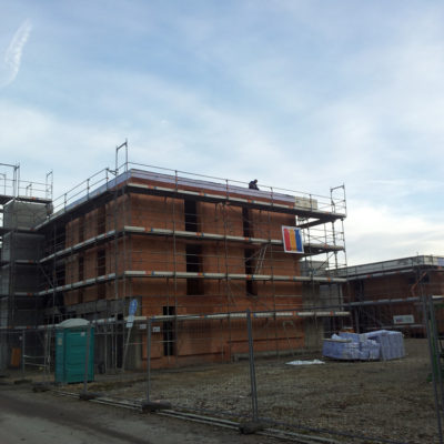11.11.16 Richtfest! Rechtzeitig für die beginnende Winterzeit sind unsere beiden Gebäude gedeckt, Zeit also für das Richtfest. Die Ehre gaben uns, der NaBau eG Regensburg und mit ihr der GeWoSchoen Landshut: Oberbürgermeister Hans Rampf, 2. Bgm. Dr. Thomas Keyßner, Ltd. Baudirektor Johannes Doll, Johanna Sieber (Amt für Stadtentwicklung und Stadtplanung), Vertreter der Landshuter Zeitung und von Donau TV. Mit uns feierten unsere Planer Roswitha Näbauer (Zwischenräume) und Fachplaner Helmut Wartner (zeit + raum), M. Betz-Schreiber (w-plan.de) sowie unsere Bauleiter Bernhard Paringer und Thomas Neumeister (Neumeister & Paringer) und – allen voran – gesund und unfallfrei und zurecht stolz auf den termingerechten und im Kostenrahmen bleibenden Baufortschritt die Trupps unseres Baumeisters Thomas Widmann, Dingolfing und die Dachdecker und Spengler der Fa. Liebl & Walter mit ihrem Chef Herrn Liebl.